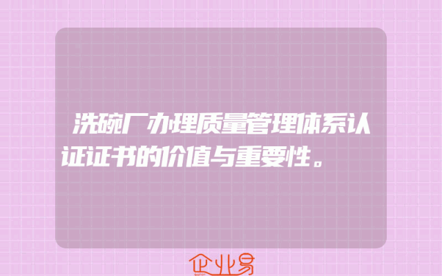 - 洗碗厂办理质量管理体系认证证书的价值与重要性。