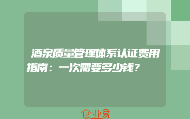 - 酒泉质量管理体系认证费用指南:一次需要多少钱?