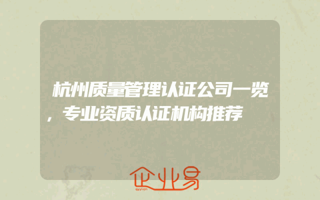 - 杭州质量管理认证公司一览,专业资质认证机构推荐
