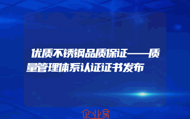 - 优质不锈钢品质保证——质量管理体系认证证书发布