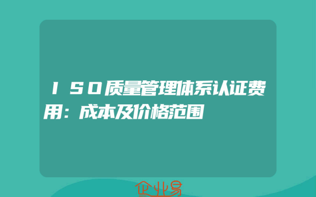- ISO质量管理体系认证费用详解:成本及价格范围一、ISO质量管理体系认证概述随着市场竞争的加剧,越来越多的企业开始重视质量管理体系的建设,ISO质量管理体系认证作为企业质量管理的重要标准之一,受到了广大企业的青睐。ISO质量管理体系认证是对