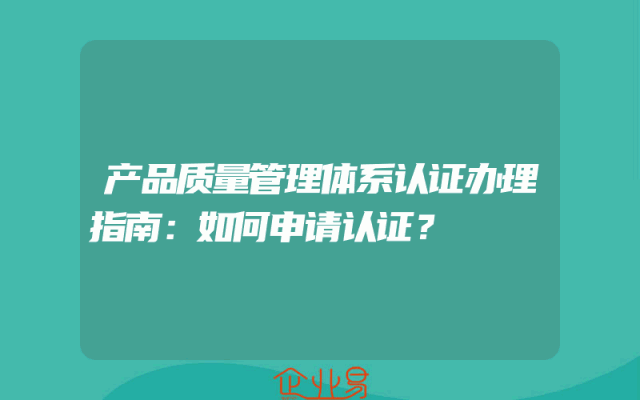 - 产品质量管理体系认证办理指南:如何申请认证?