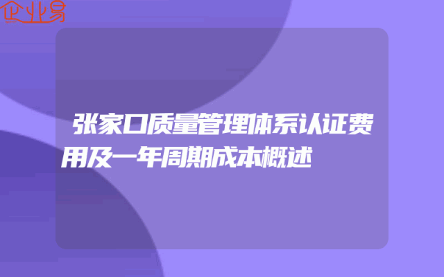 - 张家口质量管理体系认证费用及一年周期成本概述