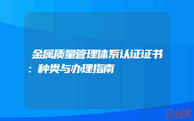- 金属质量管理体系认证证书详解:种类与办理指南一、金属质量管理体系认证证书的种类金属质量管理体系认证证书是评价企业质量管理水平的重要标准之一,根据企业性质和生产领域不同,其认证种类也各不相同。常见的金属质量管理体系认证证书主要包括ISO900