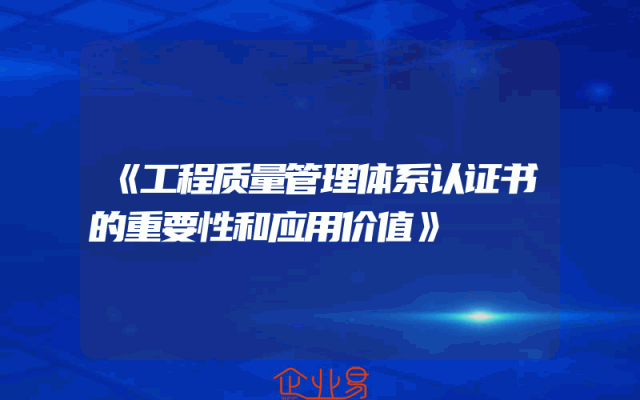 - 《工程质量管理体系认证书的重要性和应用价值》