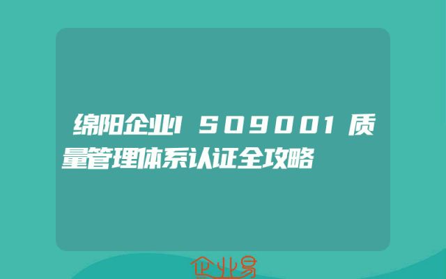 - 绵阳企业ISO9001质量管理体系认证全攻略