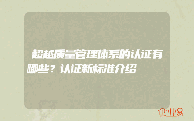 - 超越质量管理体系的认证有哪些?认证新标准介绍