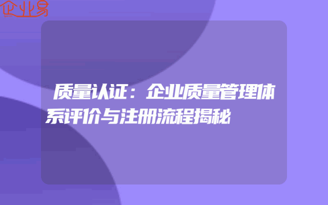 - 企业质量管理体系评价与注册流程揭秘随着市场竞争日益激烈,企业对质量管理体系的评价和注册愈发重视。完善的体系评价能够保障企业稳定、高效地运营,确保产品和服务的质量可靠。以下将对质量认证过程和企业质量管理体系的评价进行深入探讨,并对注册流程进行