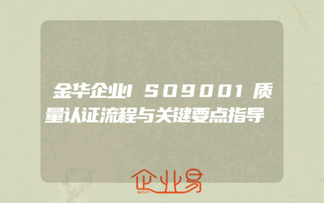 - 金华企业ISO9001质量认证流程与关键要点指导