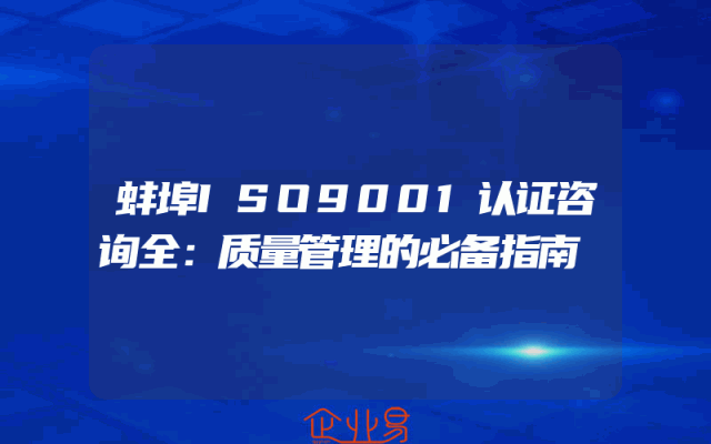 - 蚌埠ISO9001认证咨询全:质量管理的必备指南