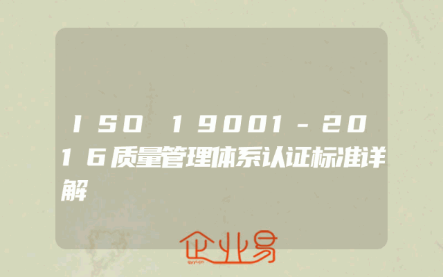 - ISO 19001-2016质量管理体系认证标准详解