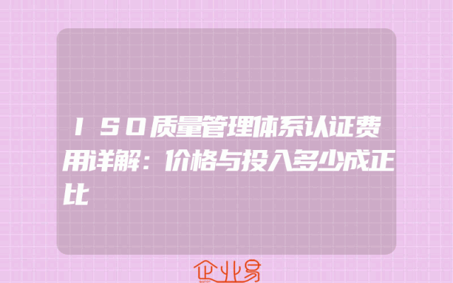 - ISO质量管理体系认证费用详解:价格与投入多少成正比