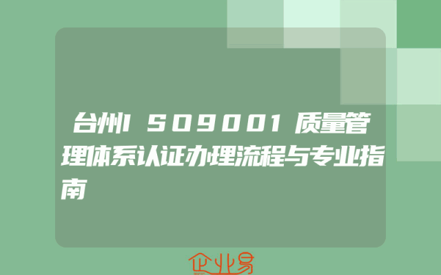 - 台州ISO9001质量管理体系认证办理流程与专业指南