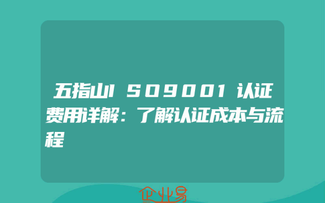 - 五指山ISO9001认证费用详解:了解认证成本与流程