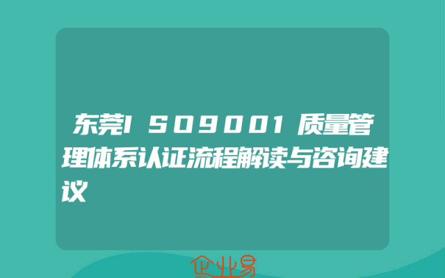- 东莞ISO9001质量管理体系认证流程解读与咨询建议