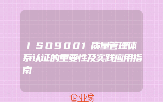 - ISO9001质量管理体系认证的重要性及实践应用指南