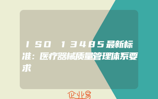 - ISO 13485最新标准:医疗器械质量管理体系要求