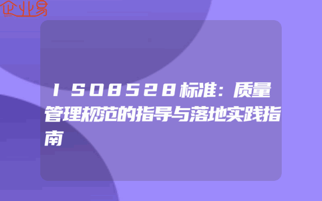 - ISO8528标准:质量管理规范的指导与落地实践指南