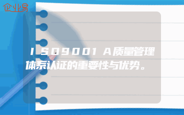 - ISO9001A质量管理体系认证的重要性与优势解析一、引言随着全球经济一体化的深入发展和市场竞争的日益激烈,企业越来越意识到质量管理体系的重要性。ISO9001A作为国际上广泛认可的质量管理体系标准,其认证对于企业的长远发展具有深远影响。本