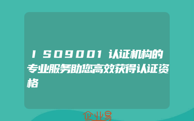 - ISO9001认证机构的专业服务助您高效获得认证资格