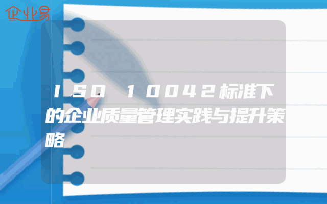- ISO 10042标准下的企业质量管理实践与提升策略