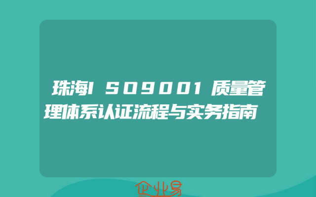 - 珠海ISO9001质量管理体系认证流程与实务指南