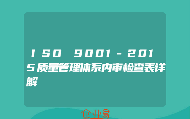 - ISO9001-2015质量管理体系内审检查表详解一、内审检查表的重要性ISO9001-2015质量管理体系内审检查表是企业在实施质量管理体系过程中进行自我评估的重要工具。通过内审检查,企业可以确保质量管理体系的有效运行,识别潜在的风险和改