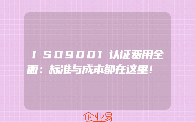 - ISO9001认证价格机构详解:专业评估与合理费用!