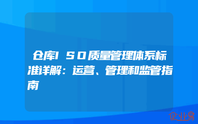 - 仓库ISO质量管理体系标准详解:运营、管理和监管指南