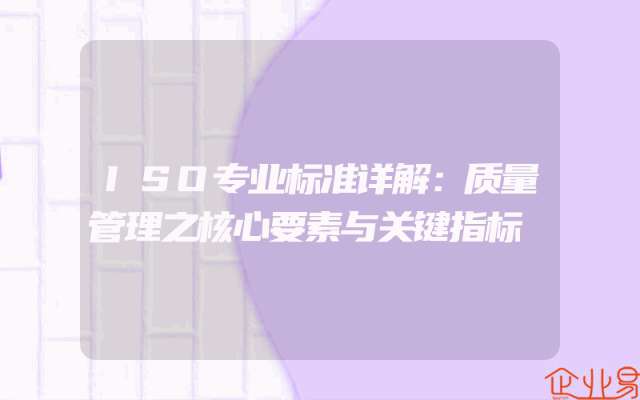 - ISO专业标准详解:质量管理之核心要素与关键指标