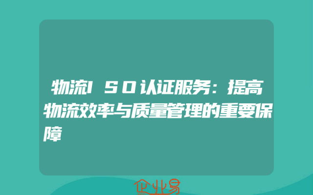 - 物流ISO认证服务:提高物流效率与质量管理的重要保障