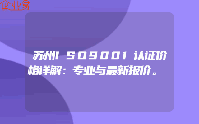 - 苏州ISO9001认证价格详解:专业与最新报价。