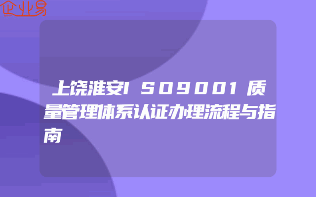 - 上饶淮安ISO9001质量管理体系认证办理流程与指南