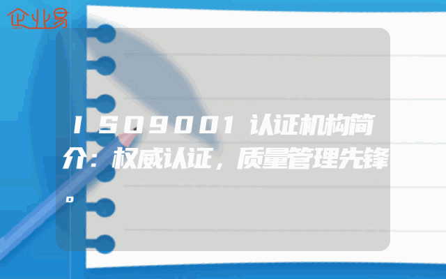 - ISO9001认证机构简介:权威认证,质量管理先锋。