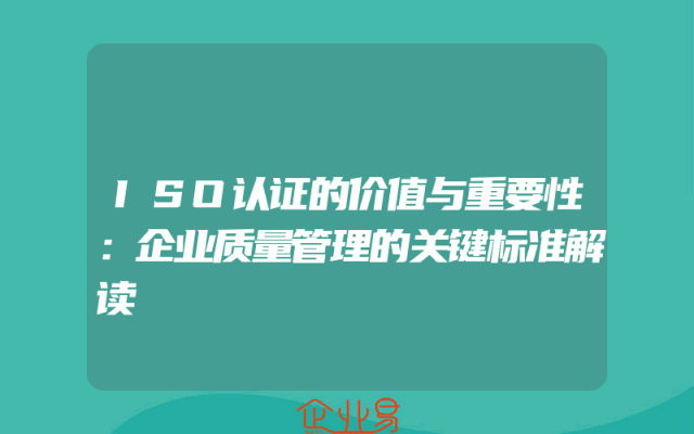 - ISO认证的价值与重要性:企业质量管理的关键标准解读