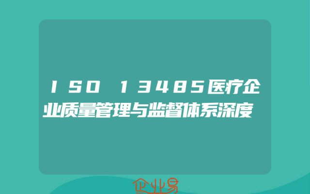 - ISO 13485医疗企业质量管理与监督体系深度
