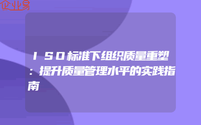 - ISO标准下组织质量重塑:提升质量管理水平的实践指南
