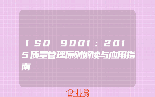 - ISO 9001:2015质量管理原则解读与应用指南