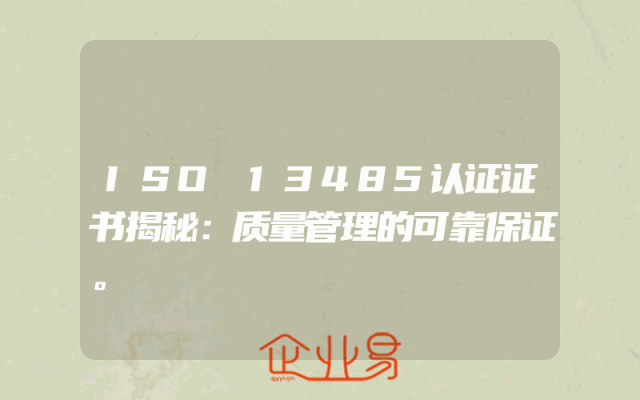 - ISO 13485认证证书揭秘:质量管理的可靠保证。