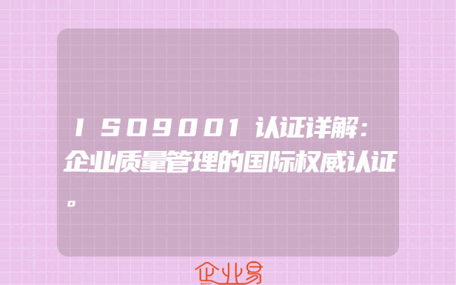 - ISO9001认证详解:企业质量管理的国际权威认证。