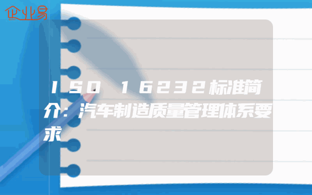 - ISO 16232标准简介:汽车制造质量管理体系要求
