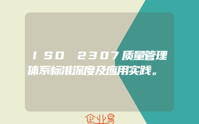 - ISO2307质量管理体系标准深度解析及应用实践一、ISO2307质量管理体系标准的概述ISO2307是质量管理体系的一种国际标准,旨在帮助企业通过系统地管理和优化其运营流程,确保产品和服务的质量。该标准建立了一套完整、系统的质量管理方法和