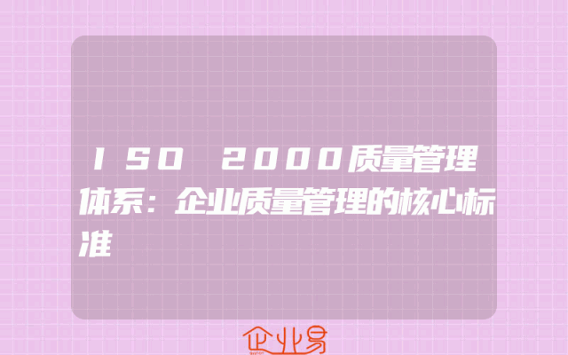 - ISO 2000质量管理体系:企业质量管理的核心标准