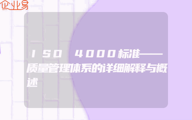 - ISO 4000标准——质量管理体系的详细解释与概述