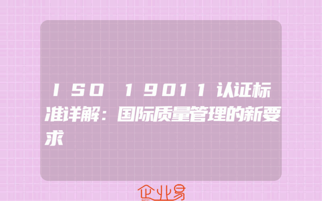 - ISO 19011认证标准详解:国际质量管理的新要求