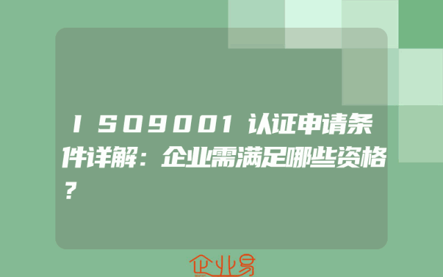 - ISO9001认证申请条件详解:企业需满足哪些资格?