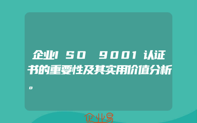 - 企业ISO 9001认证书的重要性及其实用价值分析。
