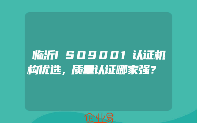 - 临沂ISO9001认证机构优选,质量认证哪家强?