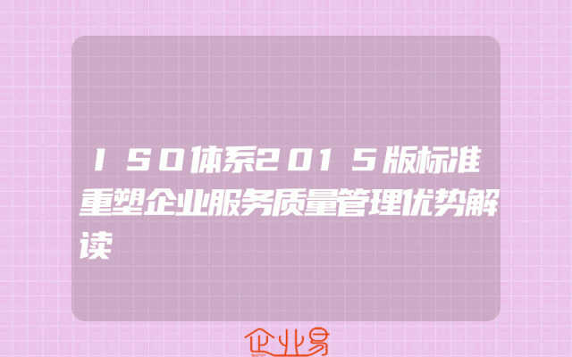 - ISO体系2015版标准重塑企业服务质量管理优势解读