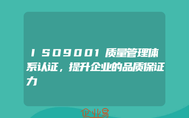 - ISO9001质量管理体系认证,提升企业的品质保证力